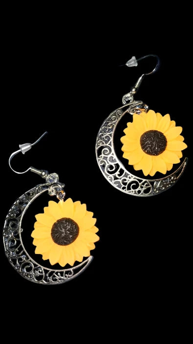 Moon Sunflower Dangle Earrings