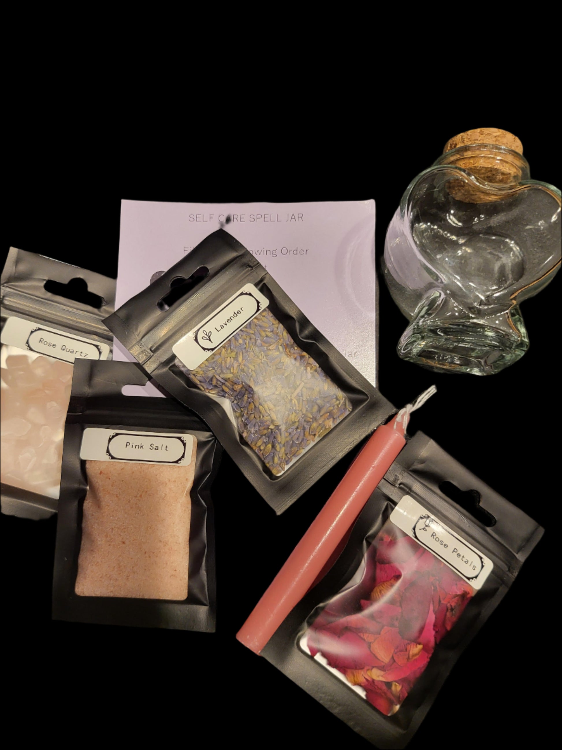 Experience the power of self-care with our SPELL JAR KIT. This all-inclusive kit has everything you need to cast your own spell jar, promoting relaxation and mindfulness. Give yourself the gift of self-care and create your own sanctuary at home.